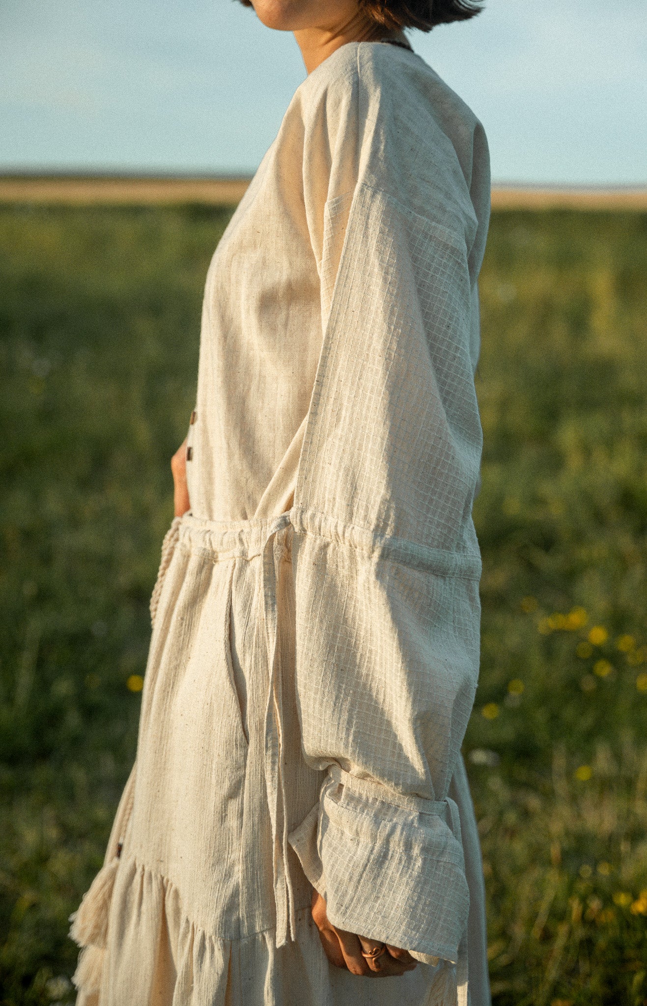 Each fabric tells a unique story, handspun and handwoven by artisans in India. The fabric may exhibit small weaving imperfections, which contribute to its unique story and reflect the craftsmanship of the weaver.